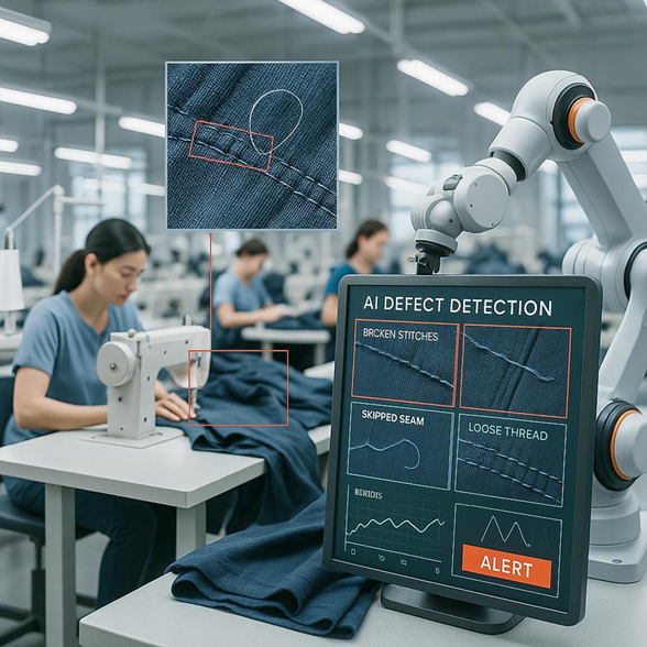 의류 제품에서의 로봇 검사 시스템은 원단이 아닌 **완성 의류(셔츠, 바지, 아우터 등)**를 대상으로 외관·치수·봉제·기능을 자동으로 검사하는 스마트 품질 시스템입니다. 로봇과 AI, 3D 비전이 결합되어 사람의 편차 없이 정밀한 판정이 가능합니다.
